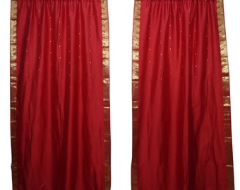 2 Indian Curtain Drape Window Treatment Silk Sari Green Home Dining Decor 84x44