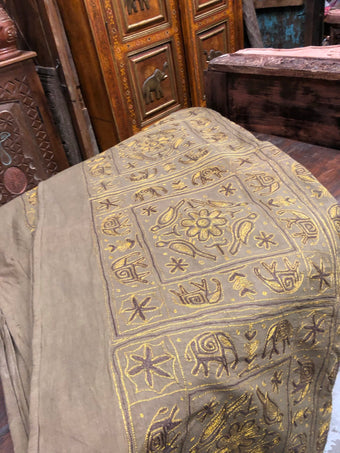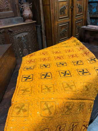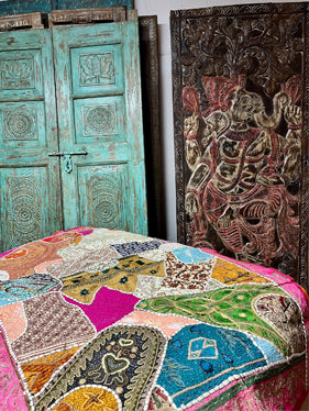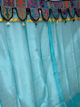 Bring a touch of India’s vibrant artistry into your home with this beautifully embroidered Toran window valance. Handcrafted by traditional artisans, this decorative window topper features intricate threadwork, mirror accents, and bold bohemian patterns that instantly elevate any space. Whether styled above windows, doorways, or archways, the Toran adds a festive, welcoming charm rooted in Indian heritage. Its rich colors and detailed craftsmanship make it a perfect accent for boho homes, eclectic interiors, meditation rooms, or cultural décor themes. Add this embroidered Toran valance to your living space and let its joyful patterns infuse your home with warmth, celebration, and global style.