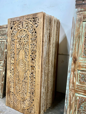 A standout feature in this home is the inclusion of a striking Artistic Carved Tree of Life Barn Door in a rich blue hue. This unique door introduces a sense of harmony, acting as both a functional element and an artistic focal point.